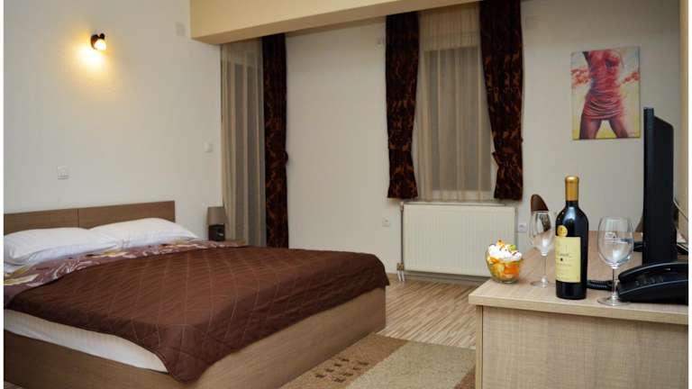 Das Hotel Treff in Bitola heißt Sie herzlich willkommen und bietet Ihnen eine komfortable Unterkunft inmitten der Fußgängerzone Shirok Sokak. Das Gebäude besticht durch seine traditionelle Architektur und im hoteleigenen Restaurant können Sie mazedonische und internationale Gerichte genießen, begleitet von einer umfangreichen Auswahl an Weinen und Live-Musik. Die Zimmer sind gemütlich eingerichtet und verfügen über Annehmlichkeiten wie einen Fernseher und kostenfreie Pflegeprodukte. Nutzen Sie auch die Gemeinschaftslounge und erkunden Sie die Umgebung mit einem Fahrrad, das Sie im Hotel ausleihen können.
