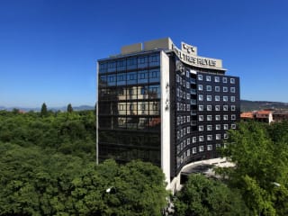 Das Tres Reyes Hotel befindet sich in einer günstigen Lage im Zentrum von Pamplona. In unmittelbarer Nähe finden Sie das Konferenzzentrum und das Auditorium Navarra. Der Taconera Park, der das Hotel umgibt, lädt zu erholsamen Spaziergängen ein. Die Lage ermöglicht es Ihnen, das historische Zentrum der Stadt mit seinen kulturellen Sehenswürdigkeiten leicht zu erreichen. Der Flughafen ist nur 5 km entfernt und der Bahnhof ca. 300 m.