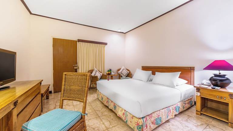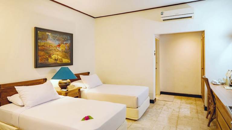 Die Zimmer im Hotel Tugu Blitar sind komfortabel und bieten eine einladende Atmosphäre. Jedes Zimmer ist klimatisiert und verfügt über Annehmlichkeiten wie eine Minibar und einen Haartrockner. Tageszeitungen und Hausschuhe sind ebenfalls vorhanden und tragen zu einem angenehmen Aufenthalt bei.
