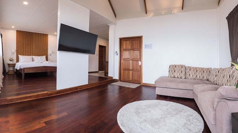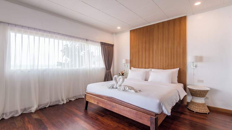 Das Twin Bay Resort verfügt über 40 Zimmer und 40 Villen/Häuser, die eine komfortable und gemütliche Atmosphäre bieten. Die Zimmer sind mit Klimaanlage, einem eigenen Bad und dunklen Holzmöbeln ausgestattet. Einige Zimmer verfügen über einen Balkon oder eine Terrasse. WLAN steht den Gästen in den öffentlichen Bereichen kostenfrei zur Verfügung.