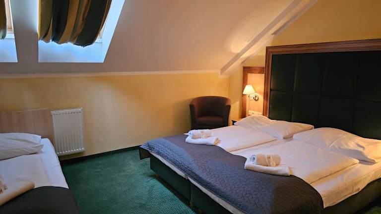 Das Hotel U Divadla begrüßt Sie im Zentrum von Znaim mit eleganter Atmosphäre und einer hervorragenden Lage in der Nähe des Bahnhofs und Busbahnhofs. Genießen Sie saisonale Gerichte im hoteleigenen Restaurant und nehmen Sie an Weinproben in der Bar teil. Die geräumigen Zimmer bieten Ihnen Komfort und kostenfreien Internetzugang. Entspannen Sie auf der Sommerterrasse und kosten Sie den berühmten Znaimer Mohnkuchen. Das Hotel organisiert auch Reitausflüge und historische Zugfahrten durch Znaim. Erkunden Sie die Umgebung auf den Radwegen oder besuchen Sie das öffentliche Freibad in der Nähe. Kostenlose Parkplätze stehen zur Verfügung.