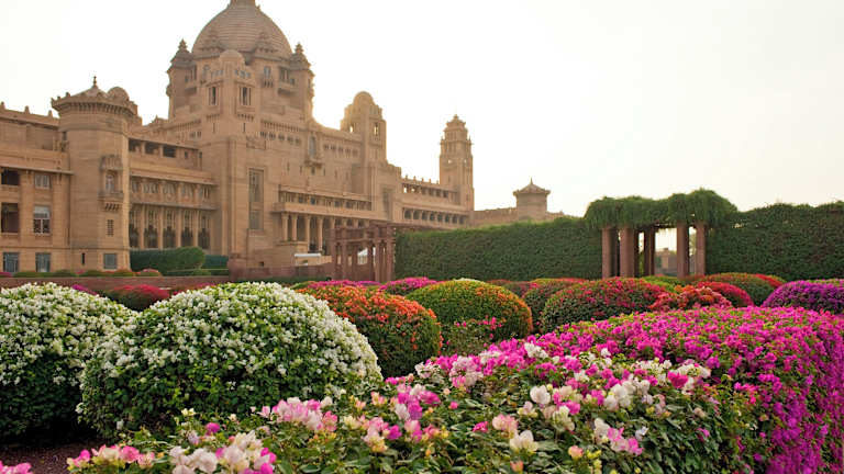 Das Umaid Bhawan Palace liegt inmitten einer beeindruckenden 10 Hektar großen Gartenlandschaft und bietet einen spektakulären Blick auf die Wüstenmetropole Jodhpur. Der Flughafen Jodhpur ist nur 15 Autominuten entfernt und der Bahnhof von Jodhpur liegt 2,4 km entfernt. In der Umgebung des Hotels finden Sie verschiedene Sehenswürdigkeiten wie den Markt am Uhrenturm, die Festungsanlage Mehrangarh und die Gedenkstätte Jaswant Thada.