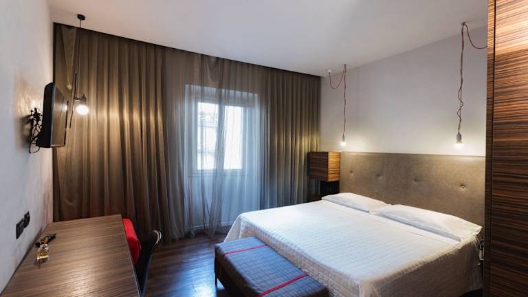 Die Zimmer sind klimatisiert und verfügen über ein Doppelbett oder ein Queensize-Bett. Zustellbetten können angefordert werden. Zur Ausstattung gehören ein Safe, eine Minibar und ein Schreibtisch. Außerdem sind ein Telefon, Sat-TV, ein Wecker und WLAN verfügbar. In den Badezimmern finden Gäste eine Dusche, eine Badewanne und ein Bidet, ergänzt durch einen Haartrockner und Kosmetikartikel. Extra Komfort wird durch ein Bügelset geboten. Familien- und Nichtraucherzimmer sind verfügbar.