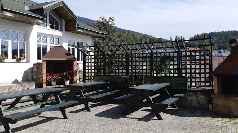 Das Hotel Union befindet sich nur 200 m vom Skigebiet entfernt und bietet somit eine perfekte Lage für alle Ski- und Snowboardbegeisterten. In der Umgebung finden Sie auch ein Lebensmittelgeschäft und eine Café-Bar, die nur wenige Gehminuten vom Hotel entfernt sind. Die Bushaltestelle erreichen Sie ebenfalls in nur 20 m Entfernung. Wenn Sie die Natur erkunden möchten, können Sie den Gipfel der Schneekoppe besuchen, der nur 10 km entfernt liegt, oder nach Spindlermühle fahren, das 20 km entfernt ist.
