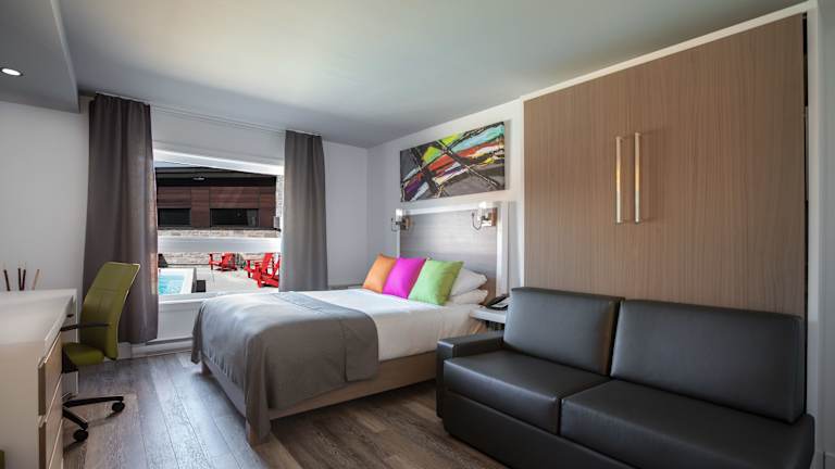 Das Hotel V bietet seinen Gästen verschiedene Möglichkeiten zur Entspannung und Erholung. Es verfügt über einen Wellnessbereich im Freien, in dem Sie sich verwöhnen lassen können. Eine Sauna und zwei Ruhebereiche mit Kamin sorgen für zusätzliche Entspannung. In der Lounge können Sie sich zurücklehnen und eine Spa-Erfahrung im Herzen von Gatineau genießen.