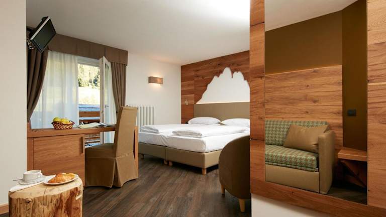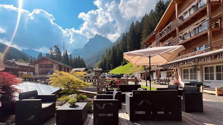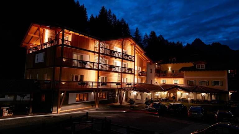 Das Hotel Valacia liegt in ruhiger Lage etwas außerhalb von Pozza di Fassa, auf einer Höhe von etwa 1.350 Metern. Von hier aus haben die Gäste einen herrlichen Blick auf die imposanten Gipfel der Cima Undici und des Turm Valacia. Das Zentrum von Pozza di Fassa ist ca. 700 Meter entfernt und kann bequem zu Fuß erreicht werden. In der Nähe des Hotels befindet sich auch eine Bushaltestelle. Die Lage des Hotels bietet sich perfekt für Wanderungen und Ausflüge in die umliegende Natur an.