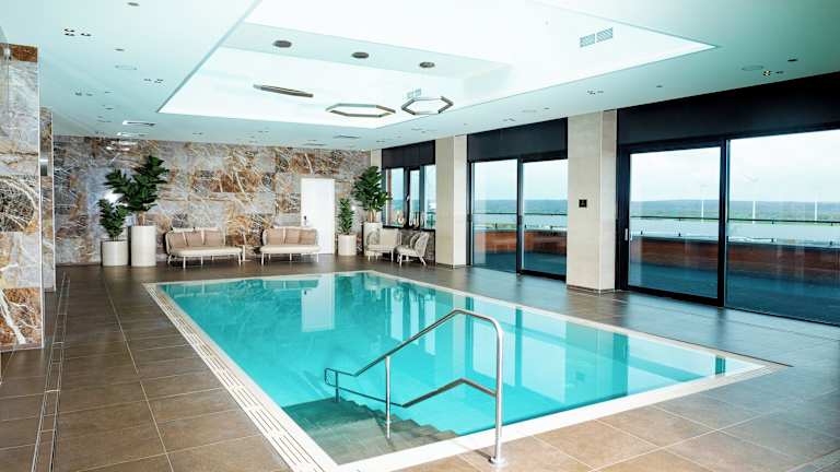 Das Hotel bietet einen luxuriösen Wellnessbereich auf der obersten Etage. Hier können Sie den Pool, den Fitnessbereich und die Saunen nutzen, um sich zu entspannen und neue Energie zu tanken. Auf Anfrage stehen Ihnen auch Schönheitsanwendungen zur Verfügung, um sich verwöhnen zu lassen.