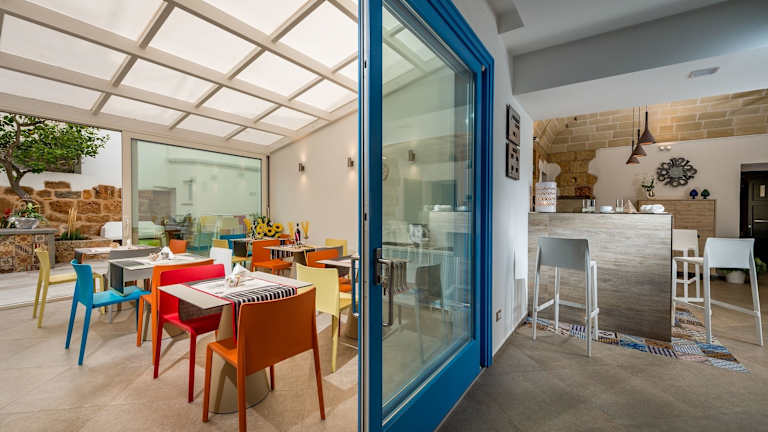 Jeden Morgen wird im Hotel Vento del Sud ein leckeres italienisches Frühstück in Buffetform serviert. Bei schönem Wetter können Sie Ihr Frühstück auch auf der Sonnenterrasse genießen und dabei den Blick auf das Mittelmeer genießen. Im 100 m entfernten Restaurant des Hotels werden Ihnen regionale Gerichte serviert, die Sie unbedingt probieren sollten.