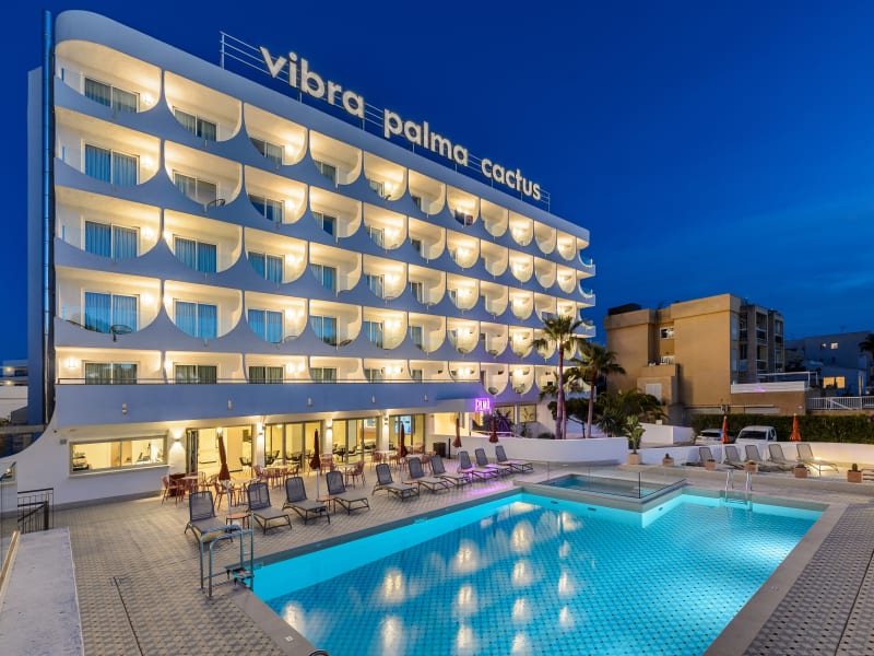 Das Hotel Vibra Palma Cactus befindet sich in nur 300 Meter Entfernung vom herrlichen Strand Playa de Palma. Ein Reiseziel, das aufgrund der Umgestaltung und Renovierung während der letzten Jahre eine spektakuläre Veränderung der Atmosphäre, des Designs und des Serviceangebots durchlaufen hat. Die Einrichtung befindet sich in einer Entfernung von 4 km vom Flughafen und 11 km vom Zentrum von Palma. Das Hotel Playasol Palma Cactus verfügt über 110 Zimmer; davon sind 97 Dopplzimmer und 12 Einzelzimmer.