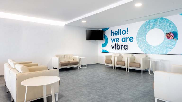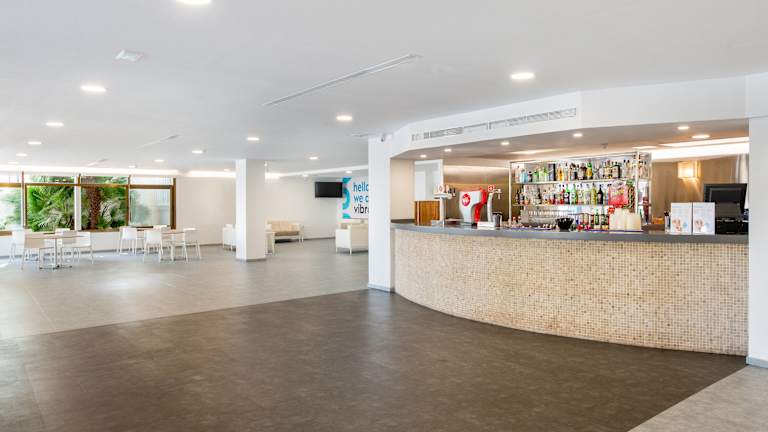 Das Hotel Vibra Riviera ist ein drei Sterne Hotel Hat seinen Standort wenige Meter vom dem Strand von der Bahia de San Antonio entfernt und mit einem herrlichen Meerblick. In der Umgebung des Hotels befinden sich viele Geschäfte, Souvenirs, Boutiquen, Apotheke, und Entertainment für die ganze familie. Das Zentrum von San Antonio ist nur 3 km entfernt. Wenige Meter vom Hotel werden Sie den Strand Punta Xinxó finden. In der Nähe des Hotels befindet sich eine Bushaltestelle die Sie mit den verschiedenen Buchten verbindet sowie mit dem Zentrum von San Antonio. Sie haben auch die Möglichkeit die Boote die vom Strand abfahren zu benutzen. In der Umgebung können Sie viele Sportarten ausüben so wie Wasserski, Tauchen, Tennis, Parasailing, mit dem ‘"Banana boat’’fahren, Mini golf.