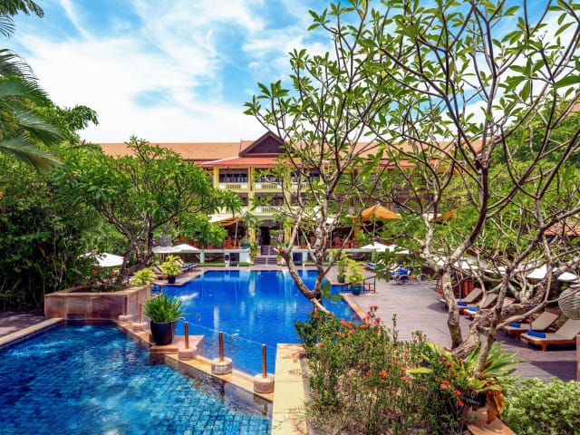Das Hotel Victoria Angkor Resort & Spa in Siem Reap ist ein charmantes Resort im kolonialen Stil der 1930er Jahre. Mit einer liebevoll angelegten Gartenanlage und einem großen Salzwasser-Außenpool bietet es den perfekten Ort zum Entspannen. Die Lage im Herzen von Siem Reap ermöglicht es den Gästen, die umliegenden Sehenswürdigkeiten und Einkaufsmöglichkeiten bequem zu erreichen. Genießen Sie die traditionelle asiatische und moderne französische Küche in den hoteleigenen Restaurants und lassen Sie sich von der freundlichen Atmosphäre verwöhnen.