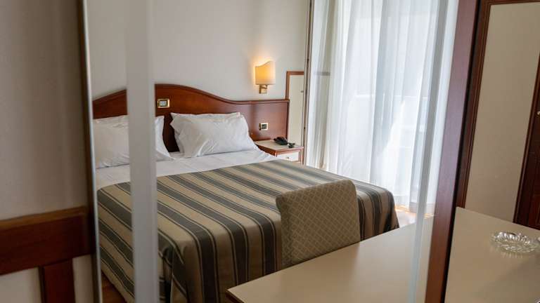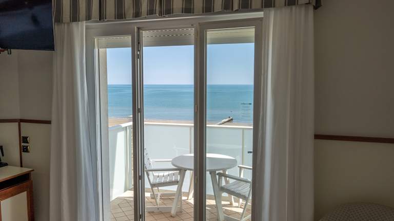 HOTEL AM MEER, IM ZENTRUM (PIAZZA TRIESTE) Moderne Zimmer mit Terrasse, Badezimmer, TV-SAT, WLAN, Klimaanlage, Safe, Minibar. Check-in: ab 13:00 Uhr Check-out: bis 10:00 Uhr FRÜHSTÜCK UND ABENDESSEN • Frühstück: Buffet auf der Terrasse mit Meerblick von 07:30 bis 10:00 Uhr • Abendessen: À la carte (Getränke nicht inbegriffen) von 19:30 bis 20:45 Uhr • Gäste mit Zöliakie willkommen (ohne separate Küche) BISTROT Unser Restaurant auf der Terrasse mit À-la-carte-Menü ist nur mit Reservierung von 12.00 bis 15.00 und von 19.30 bis 21.00 geöffnet. INBEGRIFFENE SERVICES: • Private Strand mit Sonnenschirm, Liegestühlen und Strandtüchern (bis zum Check-out) • Außenpool, zugänglich von 9:00 bis 18:30 Uhr, mit Lounge Bar • Private Parkplätze (bis zum Check-out) • Fahrradverleih • Kostenloses WLAN • Kostenloses SPA (nach Reservierung, max. 1h/Tag) Kinder 0-16 Jahre: Zugang zum SPA-Pool nur von 9:00 bis 11:00 Uhr Bademantel auf Anfrage (gegen Gebühr), Handtuch wird gestellt ZUSATZLEISTUNGEN GEGEN GEBÜHR UND NACH VERFÜGBARKEI: • Tiefgarage: €25/Tag • Sonnenschirm nach dem Check-out: €25 (nur am Vortag der Abreise an der Rezeption buchbar) • Parkplatz nach dem Check-out: €20 (nur am Vortag der Abreise an der Rezeption buchbar) HAUSTIERE WILLKOMMEN • Zuschlag: €30/Tag (für Reinigung und Desinfektion) • Nicht erlaubt am Strand, im Pool oder im Restaurant; in den öffentlichen Bereichen (an der Leine) und auf der Strandpromenade erlaubt. BARIERENFREIHEIT Komplett barrierefreies Hotel für Gäste mit Behinderungen: • Rampe für den Zugang zum Strand, einige Sonnenschirme in der Nähe des Hotels haben eine Plattform • JOB-Sitz für den Zugang zum Meer, auf Anfrage beim Strandpersonal • Barrierefreie Toiletten im Erdgeschoss • Zugang zum Pool mit Treppen (kein Lift vorhanden) Kurtaxe: €2,30 pro Person/Tag (ab 10 Jahren, max. 10 Tage) WIR FREUEN UNS, SIE ZU EINEM ERHOLSAMEN UND WELLNESSORIENTIERTEN URLAUB AM MEER BEGRÜSSEN ZU DÜRFEN!