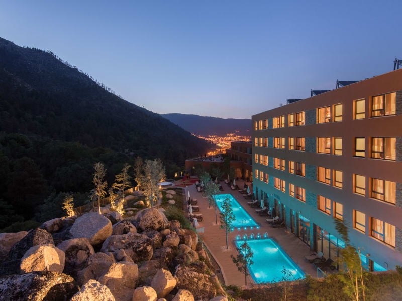 Das Hotel Vila Galé Serra da Estrela, in Manteigas inmitten des Gletschertales des Flusses Zêzere gelegen, ist ein Gebirgshotel mit Aktivitäten für die ganze Familie. Dieses im Gebirgszug der Serra da Estrela angesiedelte Hotel hat 91 Zimmer, neun davon speziell für Familien, zwei Außenpools – einen für Erwachsene und einen entsprechend mit Rutschen ausgestatteten für Kinder – sowie ein Hydromassagebecken, ebenfalls im Freien, in dem Sie sich entspannen können, während Sie das üppige Grün der Landschaft genießen und reine Luft atmen. Genießen Sie auf der Panorama-Terrasse im Restaurant „Inevitável“ mit seinem atemberaubenden Ausblick auf die Serra da Estrela typische Gerichte der Region. Das Satsanga Spa verfügt seinerseits über einen beheizten Innenpool sowie sämtliche erforderlichen Komfort- und Sicherheitseinrichtungen für Massagen und Schönheitsbehandlungen. Gönnen Sie sich ein therapeutisches Vollbad mit einheimischen Pflanzen oder genießen Sie eine Massage mit Gebirgslavendel. Das Hotel Vila Galé Serra da Estrela hat die perfekte Lage für Freiluftaktivitäten. Sie können Trekking- und Wanderwege entdecken, wandern, oder einfach die Natur der Serra da Estrela genießen, einer Region, die vor kurzem von der UNESCO zum Weltgeopark erklärt wurde. In den Wintermonaten, wenn der Schnee der Star [estrela] ist, versuchen Sie sich an Wintersportarten wie Skifahren oder Snowboarden. Von diesem thematischen Hotel aus, in dem sich alles um die Mythen, Legenden, Gepflogenheiten und Traditionen der Region der Serra da Estrela dreht, können Sie auch einige regionale Attraktionen besuchen wie Poço do Inferno, Covão d’Ametade oder Covão dos Conchos, oder auch das Brot-, das Käse- und das Wollmuseum.