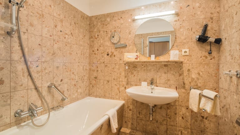 Auf dem Zimmer gibt es ein Badezimmer. Das Inventar des Bades umfasst eine Badewanne oder Dusche und einen Haartrockner. In jede Wohneinheit ist ein einladender Sitzbereich integriert. Die Wohneinheiten umfassen auch eine Minibar, einen Safe sowie einen Schreibtisch. Darüber hinaus komplettieren ein Telefon, sowie ein Flachbildfernseher mit Sky HD TV das Inventar.