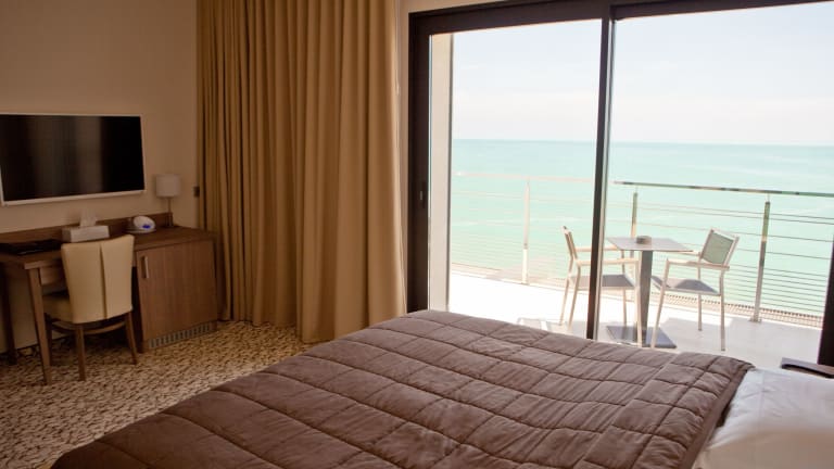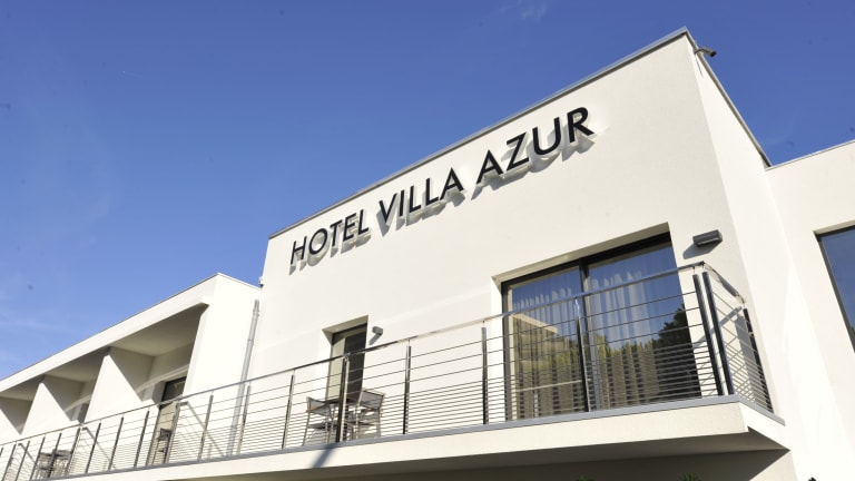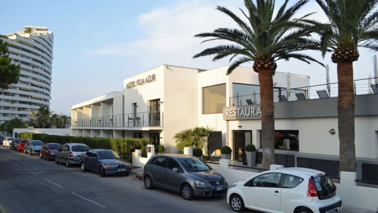 Das Hotel Villa Azur in Villeneuve-Loubet bietet eine moderne Unterkunft direkt am Strand neben dem Yachthafen Baie des Anges. Hier können Sie eine entspannte Atmosphäre genießen und sich auf eine große Terrasse mit Sonnenliegen freuen. Das hoteleigene Restaurant verwöhnt Sie mit französisch-italienischer Küche und das kontinentale Frühstück sorgt für einen guten Start in den Tag. Die Zimmer sind klimatisiert und verfügen über einen Balkon, einen Flachbild-TV, eine Minibar und einen Safe. WLAN und Privatparkplätze sind kostenlos verfügbar.