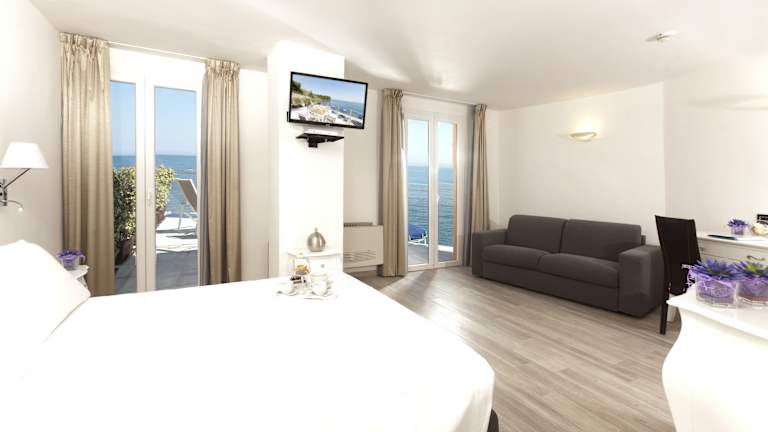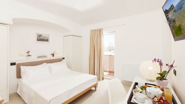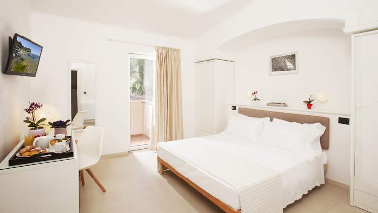 Die Zimmer im Hotel Villa Domizia sind hell und komfortabel eingerichtet. Jedes Zimmer verfügt über ein eigenes Bad, eine Minibar und einen Balkon oder einen Garten. Die meisten Zimmer bieten einen atemberaubenden Blick auf das Mittelmeer, sodass Sie die Schönheit der Umgebung voll und ganz genießen können.