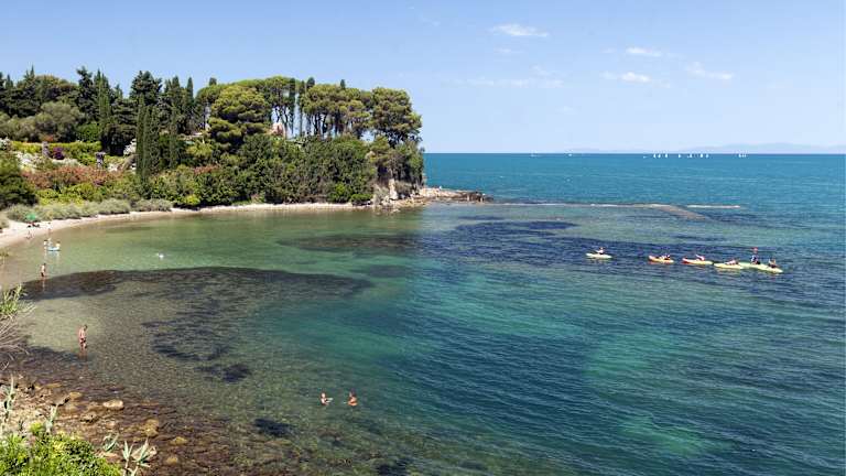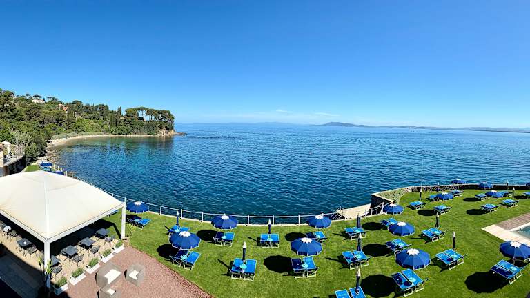 Das Hotel Villa Domizia liegt auf der Halbinsel Monte Argentario im Viertel Santa Liberata. Die Lage direkt am Meer bietet einen malerischen Blick auf das Mittelmeer und ermöglicht es den Gästen, den eigenen Strand mit Liegewiese zu genießen. In der Umgebung finden Sie das Zentrum von Porto Santo Stefano und Orbetello, die beide nur wenige Kilometer entfernt sind.