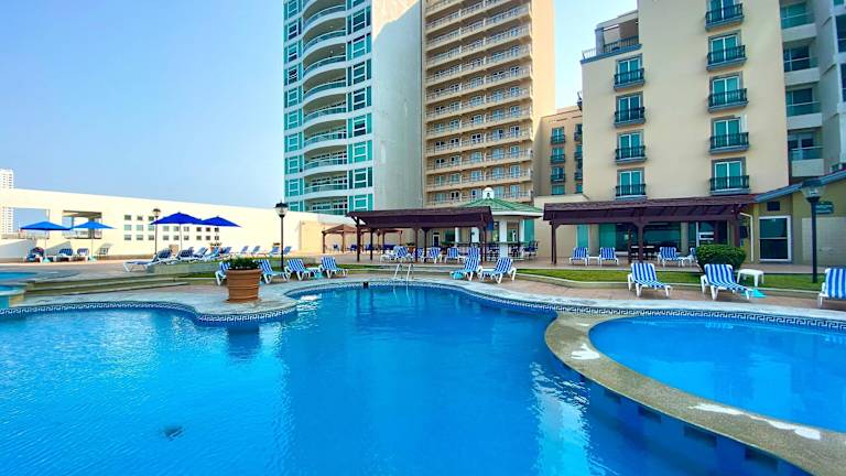 Das Hotel Real Villa Florida in Veracruz ist die ideale Unterkunft für einen entspannten Strandurlaub. Nur wenige Schritte vom Tortuga Strand entfernt, bietet das Hotel einen Außenpool, kostenfreie Privatparkplätze und ein Fitnesscenter. Genießen Sie köstliche Speisen im Restaurant und entspannen Sie bei einem Getränk an der Bar. Die Zimmer sind komfortabel und klimatisiert, ausgestattet mit einem Flachbild-Sat-TV und einem eigenen Badezimmer. Das Hotel bietet zudem Annehmlichkeiten wie einen Whirlpool, eine Sonnenterrasse und ein Businesscenter. Mit seinen verschiedenen Freizeitmöglichkeiten und der Nähe zu den Stränden Costa Verde und Mocambo ist das Hotel Real Villa Florida die perfekte Wahl für Ihren Aufenthalt in Veracruz.
