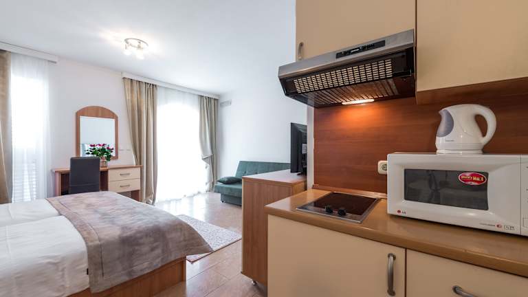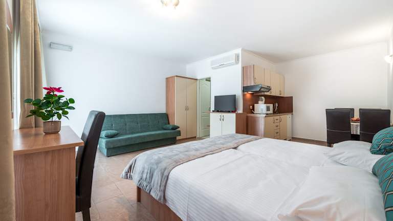 Die Villa Lanterna verfügt über 12 Zimmer, die komplett ausgestattet sind und den Gästen den neuesten ökologischen Standards entsprechen. Jedes Zimmer verfügt über eine Küche mit 2 Kochfeldern, einer Mikrowelle und einem Kühlschrank. Die Zimmer werden täglich gereinigt und bieten allen Komfort, den Sie für einen angenehmen Aufenthalt benötigen. Einige Zimmer verfügen über einen Balkon oder eine Terrasse mit Meerblick, von wo aus Sie die herrliche Aussicht auf die Bucht von Zaton genießen können.