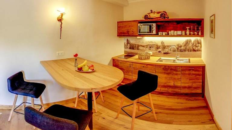 Die geräumigen Apartments der VILLA LICHT sind traditionell eingerichtet und bieten eine gemütliche Atmosphäre. Mit einer Größe von 40 bis 80 m² haben Sie viel Platz zum Entspannen und Wohlfühlen. Die Apartments verfügen über Parkettböden, einen Flachbild-TV, kostenloses WLAN und eine Küchenzeile mit Essbereich. Die meisten Unterkünfte bieten zudem einen Balkon mit Panoramablick auf die Kitzbüheler Alpen. Ein täglicher Reinigungsservice sorgt für Sauberkeit und Komfort während Ihres Aufenthalts. Auf Anfrage können Ihnen auch frische Brötchen in Ihr Apartment geliefert werden.