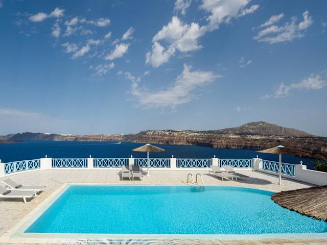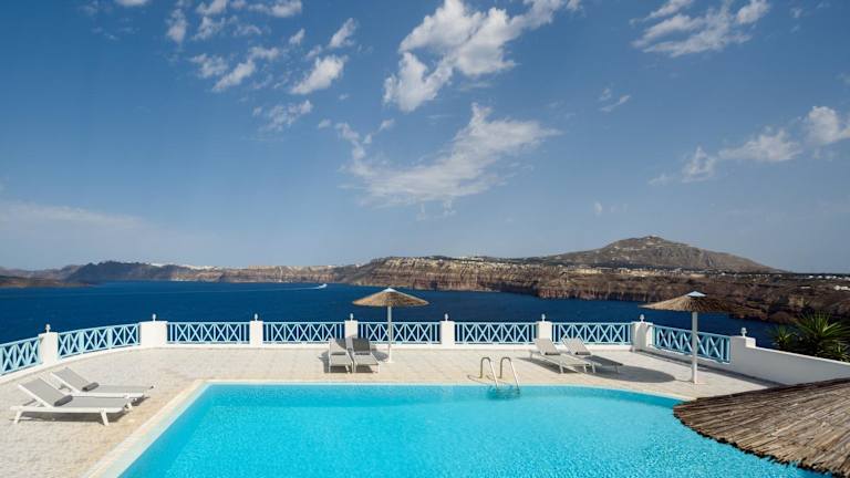 Das Hotel bietet einen Außenpool, von dem aus Sie den spektakulären Blick auf die Caldera und den Vulkan genießen können. Entspannen Sie sich am Pool und lassen Sie die Seele baumeln. In der Umgebung können Sie die archäologische Stätte von Akrotiri erkunden oder am Roten Strand entspannen. Das Hotel bietet kostenfreie Privatparkplätze und WLAN für Ihren Komfort.
