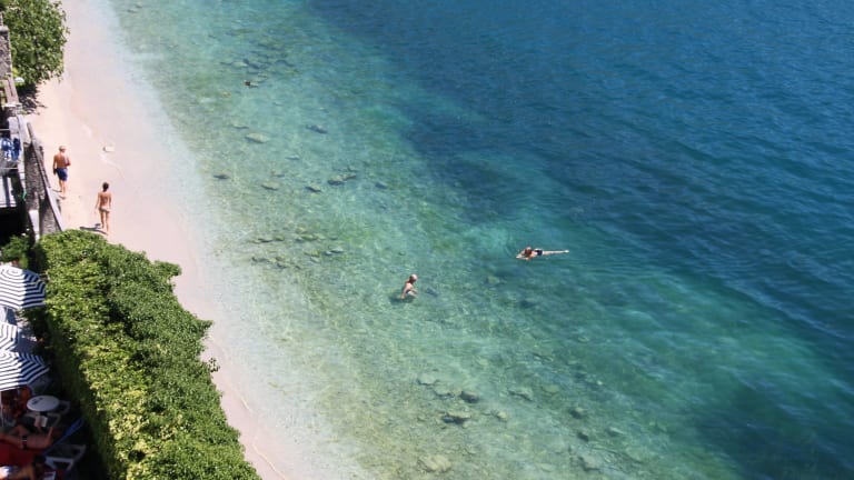 Eine Villa in einem alte "Limonaia", mit eigenem Strand (Liegestühle und Sonnenschirme).