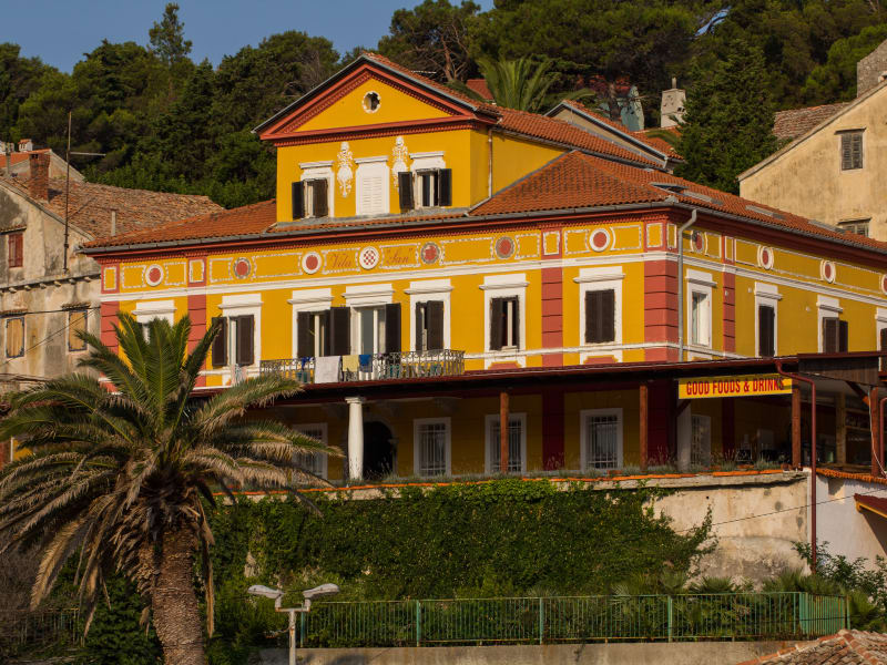 Die Villa San ist eine wunderschöne aristokratische Villa aus dem 19. Jahrhundert, die der ungarische Graf für seine Tochter errichten ließ. Sie befindet sich im Zentrum von Veli Lošinj und ist nur etwa 20 Meter vom Meer entfernt. Hundert Meter von der Villa entfernt befindet sich der Hotelstrand, Gewinner des “PLAVA VRPCA” (blaues Band), (ein Behindertenzugang und Schwimmbecken für kleine Kinder) und in der Nähe sind zahlreiche Stein-, Fels- und Kiesstrände. Außer der Tatsache, dass sie für Rentner, Kinder und Menschen mit Behinderung geeignet ist, bewirtet unsere Villa häufig Sportler, kultur-künstlerische und Gesangsverbände sowie Schulgruppen. Auf der wunderschönen Terrasse, die von einem mediterranen Garten umgeben ist und einen Blick aufs Meer bietet, ist die Organisation von Ausstellungen, Empfängen und Hochzeiten möglich. Die Kapazität der Villa liegt bei etwa 50 Personen, bei den Zimmern handelt es sich um Ein-, Zwei- und Dreibettzimmer, die mit Badezimmer, Klimaanlage (Heizung-Kühlung) und TV ausgestattet sind und einer wunderschönen Aussicht aufs Meer bieten. vila_san-3011Im Restaurant und unserem großen Saal (Kapazität 50 Personen) organisieren wir verschiedene Geselligkeiten, das Abhalten von Unterrichtsstunden, Präsentationen und Unterhaltungsauftritte und für diejenigen, die Ruhe bevorzugen, empfehlen wir das Genießen unseres wunderschönen mediterranen Gartens mit Haustieren (mit den Schildkröten Šime und Juliška). Unser freundliches und professionelles Personal, unsere Meister der Essenszubereitung maritimer und kontinentaler Spezialitäten sowie eine hochklassige Bedienung werden auch die feinsten Gourmands zufriedenstellen. Die Villa San hat eine der schönsten Terrassen auf dem Kvarner mit einem Blick auf das Meer und einem wunderschönen mediterranen Garten.