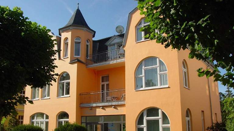 Das Hotel Villa Strandrose befindet sich in Ahlbeck, einem ruhigen Ferienort an der Ostsee. Es liegt direkt am Strand und ist nur 1 km vom Bahnhof Ahlbeck entfernt. In der näheren Umgebung finden Sie eine Vielzahl von Restaurants und Einkaufsmöglichkeiten. Die polnische Grenze ist mit dem Fahrrad in 10 Minuten erreichbar und der Baltic Hills Golf Club ist nur 4 km vom Hotel entfernt.
