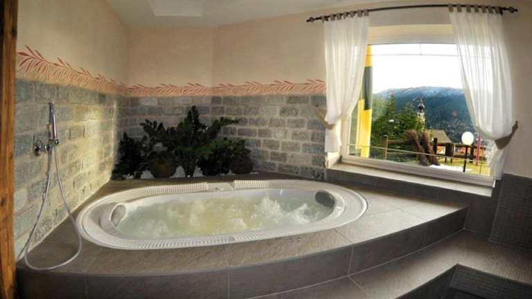 Das Hotel Villa Wilma in Folgaria bietet seinen Gästen einen erholsamen Aufenthalt inmitten der malerischen Landschaft des Trentino. Mit einem atemberaubenden Panoramablick auf die Stadt und einem großzügigen Garten mit Hydromassagebecken im Innen- und Außenbereich können die Gäste die Schönheit der Umgebung in vollen Zügen genießen. Die Zimmer sind im gemütlichen Tiroler Stil eingerichtet und bieten allen Komfort, den man sich wünscht. Das Wellnesscenter mit Türkischem Bad, Fitnessraum und Sauna lädt zum Entspannen ein. Im Hotelrestaurant können die Gäste traditionelle Gerichte aus der Region Trentino probieren. WLAN ist im gesamten Hotel kostenfrei verfügbar. Das Hotel bietet auch einen kostenlosen Shuttleservice zu den Skipisten in Folgaria und liegt nur 3 km vom Golfclub Folgaria entfernt. Die Stadt Rovereto ist mit dem Auto in nur 30 Minuten erreichbar.