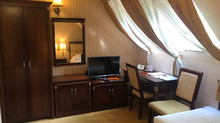 Die Zimmer im Villa Hotel sind elegant eingerichtet und bieten eine komfortable und stilvolle Atmosphäre. Jedes Zimmer ist klimatisiert und verfügt über einen Schreibtisch, Sat-TV und ein eigenes Bad. Zusätzliche Annehmlichkeiten wie Bademäntel und ein Haartrockner sorgen für zusätzlichen Komfort während Ihres Aufenthalts.