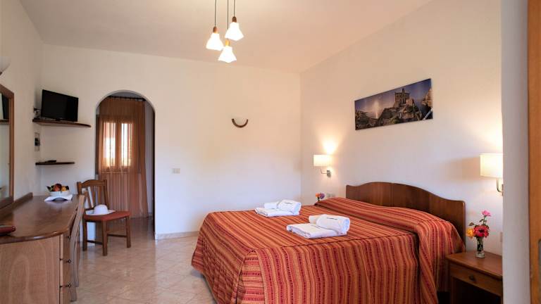 Die Zimmer im Villaggio La Pizzuta sind komfortabel und bieten eine Terrasse, auf der Sie die warmen Abende genießen können. Die Zimmer verfügen über ein eigenes Bad mit Dusche, einen TV und einen Kühlschrank.