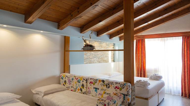 Die 50 Zimmer und 5 Aparthotels des Hotels Villaggio Nevada sind komfortabel eingerichtet und bieten den Gästen einen angenehmen Aufenthalt. Jedes Zimmer verfügt über ein eigenes Bad mit Dusche oder Badewanne, WC und Haartrockner. Zur Ausstattung gehören auch eine Heizung, ein Fernseher, ein Safe (gegen Gebühr) und einen Mini-Kühlschrank. Einige der Zimmer verfügen über Etagenbetten, die sich perfekt für Familien mit Kindern eignen. Auf Anfrage ist auch ein Babykit erhältlich.