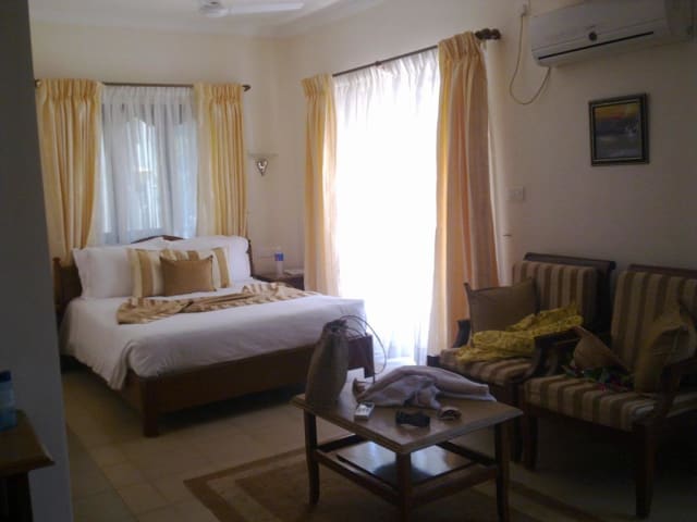 Das Hotel Goa Villagio verfügt über ein Restaurant mit Klimaanlage, in dem täglich ein köstliches Frühstück serviert wird. Es gibt auch eine Bar und ein Café, in denen Sie eine große Auswahl an Speisen und Getränken genießen können.