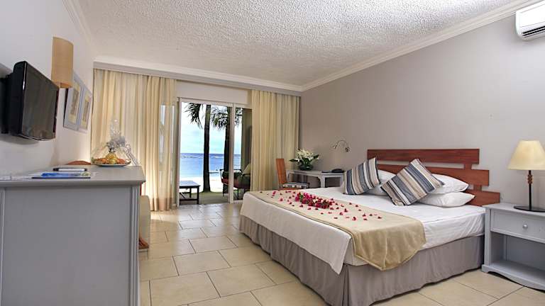 Die Unterkünfte des Hotels bestehen aus Bungalows und verschiedenen Zimmertypen mit Meer- oder Gartenblick. Die Zimmer sind komfortabel ausgestattet, verfügen über Klimaanlage, Flachbildfernseher, Internetzugang sowie Balkon oder Terrasse mit Sitzgelegenheit. Die Bungalows beinhalten Kochnischen und sind ideal für Familien oder Gruppen. Platz und Ausstattung variieren je nach Zimmertyp.