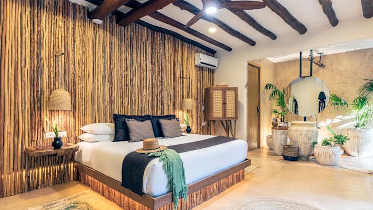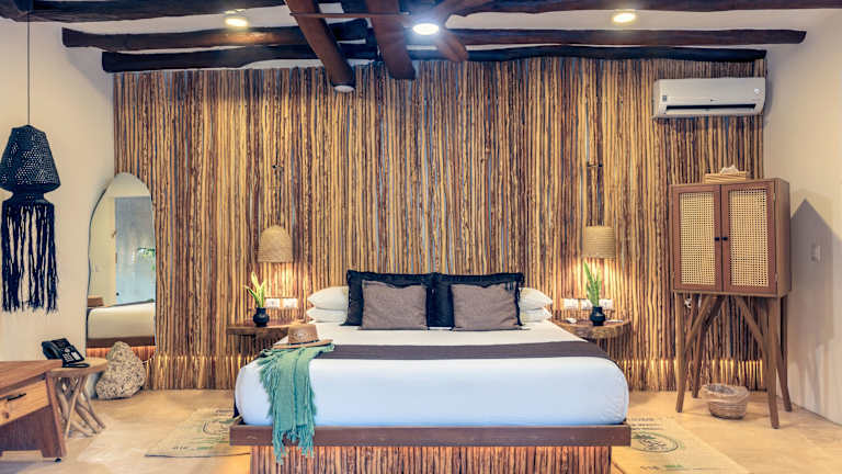 Die Unterkünfte im Hotel Villas Flamingos sind in bungalowähnlichen Gebäuden untergebracht und bieten Ihnen Komfort und Entspannung. Jedes Zimmer verfügt über einen Balkon mit einer Hängematte, auf der Sie die herrliche Aussicht genießen können. Die Zimmer sind mit einem eigenen Bad ausgestattet und bieten Ihnen eine gemütliche Atmosphäre.