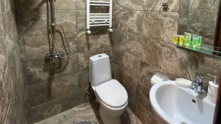 Das Hotel Vim in Sighnaghi bietet seinen Gästen eine komfortable Unterkunft mit einem schönen Garten, kostenfreien Privatparkplätzen und einer Terrasse. Die Unterkunft befindet sich in der Nähe des Klosters Bodbe und verfügt über eine Gemeinschaftsküche, Zimmerservice und kostenfreies WLAN. Das freundliche Personal steht Ihnen gerne zur Verfügung und organisiert auf Wunsch einen Shuttleservice. Die Zimmer sind mit einem eigenen Bad, kostenfreien Pflegeprodukten und einem Haartrockner ausgestattet. Das tägliche Frühstück beinhaltet eine Auswahl an kontinentalen, vegetarischen oder veganen Speisen. In der Nähe des Hotels befindet sich das Nationalmuseum Sighnaghi. Der internationale Flughafen Tiflis ist etwa 98 km entfernt.