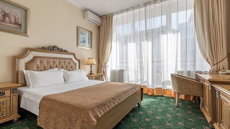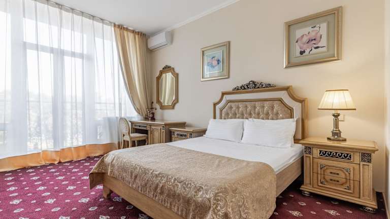Das Visak Hotel befindet sich am Ufer des Dnjepr in Kiew und bietet eine wunderschöne Lage mit Blick auf den Fluss. In der Umgebung finden Sie einen Golfclub, der direkt vor der Unterkunft liegt und Ihnen die Möglichkeit bietet, Ihr Golfspiel zu verbessern. Der U-Bahnhof Obolon ist nur 2,3 km entfernt und ermöglicht es Ihnen, bequem die Sehenswürdigkeiten der Stadt zu erkunden. Der Maidan Nezalezhnosti, der bekannteste Platz in Kiew, ist nur eine 12-minütige U-Bahnfahrt entfernt. Der Bahnhof Kiew ist 10 km entfernt und der internationale Flughafen Borispyl ist vom Visak Hotel aus in 40 km erreichbar.