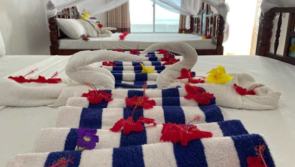 Das Visitor's Inn befindet sich in Jambiani und bietet eine ideale Lage direkt am Strand. Sie können den Meerblick von Ihrem Zimmer aus genießen und die umliegende Natur erkunden. Der Strand Jambiani ist nur wenige Schritte entfernt und der Strand Paje ist ebenfalls in der Nähe. Die Umgebung bietet auch Möglichkeiten zum Radfahren und andere Freizeitaktivitäten.