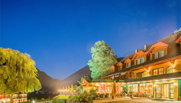 Hotel vitaler Landauerhof**** - Sommer und Winter geöffnet. Mitten in einer herrlichen Naturlandschaft. Alpin - Ferien - Resort - Golfpackages - Wanderunterlagen - Spezielle Herbstpackages - innen wollig - warm , außen klare Bergluft. Schöner großer Freibereich , Spielwiesen Sonnenterrasse 3200m² * Parkplatz am Hotel E- Bike - Verleih für spannende Radtouren - zahlreiche Laufwege . Sommer: Sand-Tennisplätze, Poolanlage - NEU. Gestaltet mit Innenausgang zum Pool direkt. * Golfpackages auf Anfrage * Angebote für Familien m. Hund - Ferienhaus Hubertus ***bezugsfertige Appartements * Gerne begleiten wir Sie durch Ihre Ferientage mit guten Wanderinfos Freies Wandern: Hochwurzen, Dachstein, Klafferkessel-Riesachwasserfälle - Bergwanderungen direkt vom Hotel aus möglich. Wanderunterlagen im Hotel. Das Hotel ist spezialisiert für Sport - Vitalurlauber, sowie Wellness - Relax und Erholungs-Gesundurlauber . Wohlfühlen in einem geschützten gepflegten Hotelbereich . Zum Stadtzentrum: 30 Gehminuten durch die romantische geliebte Talbachklamm. Sehr beliebt. *Massagen - Kosmetik auf Bestellung im Hotel an der Reception * Frühstück mit Buffet - Abendessen unterschiedlich mit Service oder Buffet. 4 Gänge - Menü . Großer Saunabereich, Fitnessräume, Tischtennis, Wasserbettmassage, , Magnetfeldliege ganztägig in Betrieb. Einzelsauna Physiotherm * Das Hotel bucht - EZ/DZ/DRB- auf Anfrage - sowie Suiten mit 2 Schlafräumen für Familien * Bademantel am Hotelzimmer - gr. Badetücher f. d. Poolbereich in Extrabestellung an der Reception * Speisen für das Abendessen sind angekündigt am Eingang v. Restaurant * Diätmenüs - Lactosefrei - Glutenfrei - wir haben selbstverständlich für Sie etwas gerichtet. Skiliftkarten ab 2 Tage können im Hotel gekauft werden. Dachstein-Gletscher mit Führung - ca 7 Stunden inkl Rückabholung von Gosau oder Ramsau. (Gute Skikenntnisse erforderlich) Das Hotel verfügt über einen gut ausgeführten Wellnessbereich - und ist im **** Bereich. Es sollte nicht verwechselt werden mit einem Wellnesshotel. Wir bieten Massagen - Kosmetik und Anwendungen mit speziellen Massageanwendungen an .