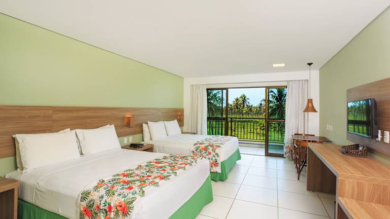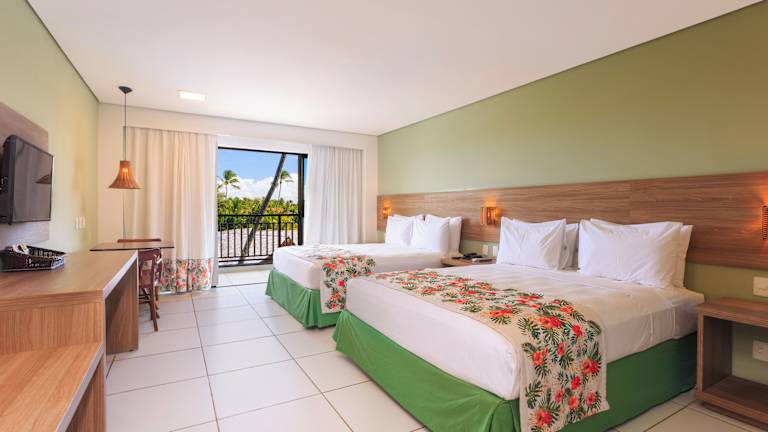 Das Vivá Porto de Galinhas Resort verfügt über 120 Zimmer, die auf 4 Etagen verteilt sind. Die Zimmer sind klimatisiert und bieten einen Balkon mit Meerblick. Zur Ausstattung gehören ein Flachbild-TV, eine Minibar und ein eigenes Bad mit einer Warmwasserdusche und Pflegeprodukten. In der Deluxe-Kategorie können Sie sogar einen Whirlpool auf dem Balkon genießen.