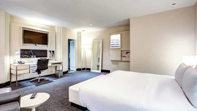 Die Zimmer sind mit Klimaanlage, individuell regulierbarer Heizung und Teppichboden ausgestattet. Zur Zimmerausstattung gehören ein Queensizebett, ein Sofabett, Minibar, Kühlschrank, Mikrowelle sowie eine Tee-/Kaffeezubereitungsmöglichkeit. Ein Safe, Schreibtisch, TV-Gerät mit Satellitenempfang, Telefon und WLAN sind ebenfalls vorhanden. Die Badezimmer verfügen über Dusche und Badewanne sowie Haartrockner und Bademäntel. Einige Zimmer sind rollstuhlgerecht und es stehen Familienzimmer zur Verfügung.