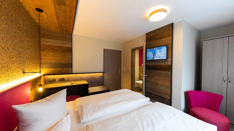 Unsere 31 Gästezimmer unterscheiden sich in Doppelzimmer "Classic, moderne Einzel- und Doppelzimmer "Natur" sowie zwei Suiten. Alle Zimmer sind mit Fön, WC, Flachbild-TV und kostenfreiem WLAN ausgestattet. Wählen Sie bei allen Zimmern zwischen Lubenbachblick oder Waldblick.