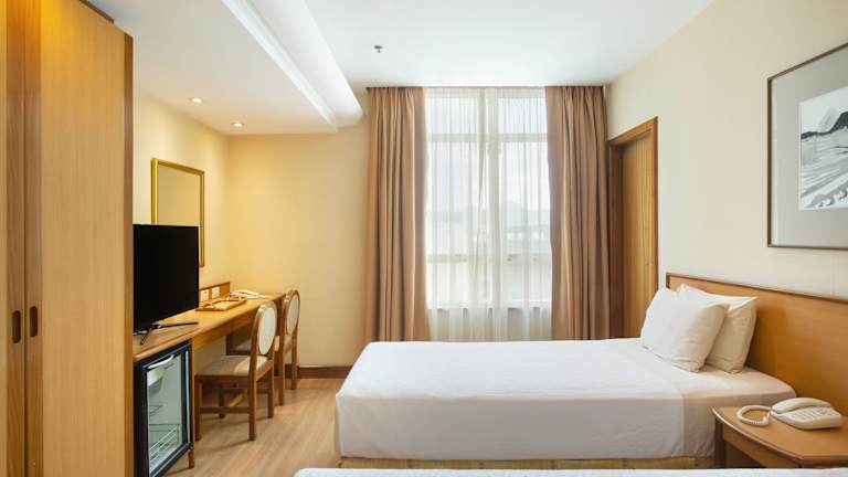 Das Hotel bietet 166 komfortable Zimmer auf 21 Etagen. Alle Zimmer sind klimatisiert und verfügen über Annehmlichkeiten wie WLAN, einen Safe und eine Minibar. Einige Zimmer bieten zudem eine Terrasse mit Blick auf die Stadt. Die Badezimmer sind mit einer Dusche oder Badewanne, einem Haartrockner und kostenlosen Pflegeprodukten ausgestattet. Rollstuhlgerechte Zimmer sind ebenfalls verfügbar.