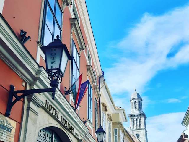 Das Hotel Wollner in Sopron bietet seinen Gästen einen einzigartigen Aufenthalt in einem restaurierten Barockgebäude aus dem 18. Jahrhundert. Mit antiken Möbeln, edlen Stoffen und kostenfreiem WLAN in jedem Zimmer können die Gäste den Charme vergangener Zeiten genießen. Das Frühstück wird in einem eleganten Restaurant im Barockstil serviert und Getränke können im Weinkeller oder an der Bar genossen werden. Die Lage des Hotels in der Fußgängerzone der Altstadt ermöglicht es den Gästen, die historische Umgebung zu erkunden. Zusätzlich bietet das Hotel Parkplätze gegen Aufpreis und kostenloses Abstellen von Motorrädern und Fahrrädern im Innenhof.