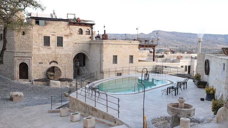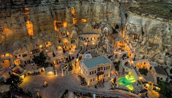 Das Yunak Evleri Cappadocia ist ein einzigartiges Höhlenhotel, das in eine Bergklippe gehauen wurde und seinen Gästen ein unvergessliches Erlebnis bietet. Die Zimmer sind in historischem Stil eingerichtet und verfügen über ein eigenes Badezimmer. Das Hotel bietet auch eine Bibliothek, in der Gäste Bücher über Kappadokien und die Türkei finden können. Das aufmerksame Personal steht den Gästen gerne bei der Organisation von Ausflügen und Touren zur Verfügung.