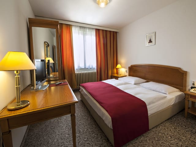 Das Hotel verfügt über 48 Zimmer, die mit grundlegenden Annehmlichkeiten wie Telefon, TV-Gerät und WLAN ausgestattet sind. Die Zimmer bieten den Gästen Komfort und Gemütlichkeit während ihres Aufenthalts.