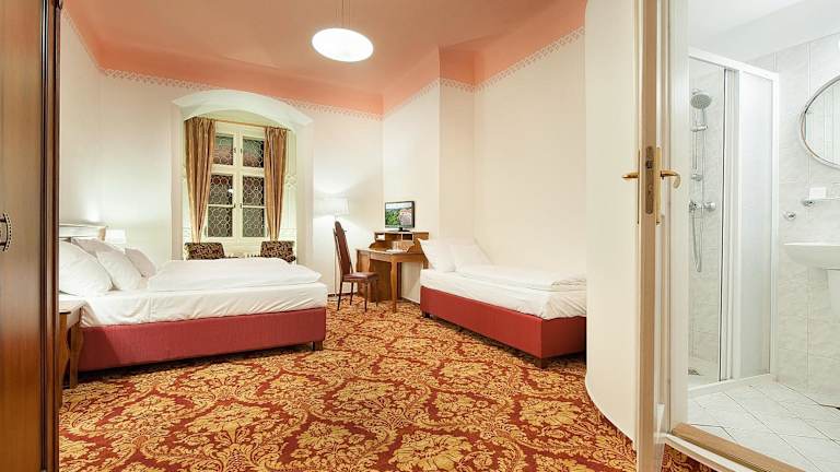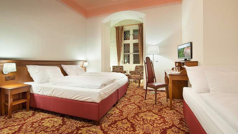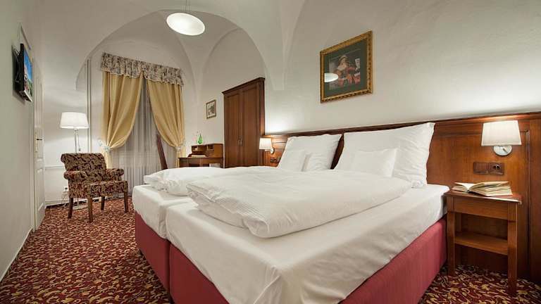 Die Zimmer im Zamecky Hotel Hrubá Skála sind stilvoll eingerichtet und bieten den Gästen allen Komfort, den sie für einen angenehmen Aufenthalt benötigen. Jedes Zimmer verfügt über ein eigenes Bad, einen TV und einen Kühlschrank. Die Einrichtung der Zimmer erinnert an den Charme und die Geschichte des Schlosses und schafft eine einladende Atmosphäre für die Gäste. WLAN steht im gesamten Hotel kostenlos zur Verfügung, sodass Sie jederzeit mit der Welt in Verbindung bleiben können.
