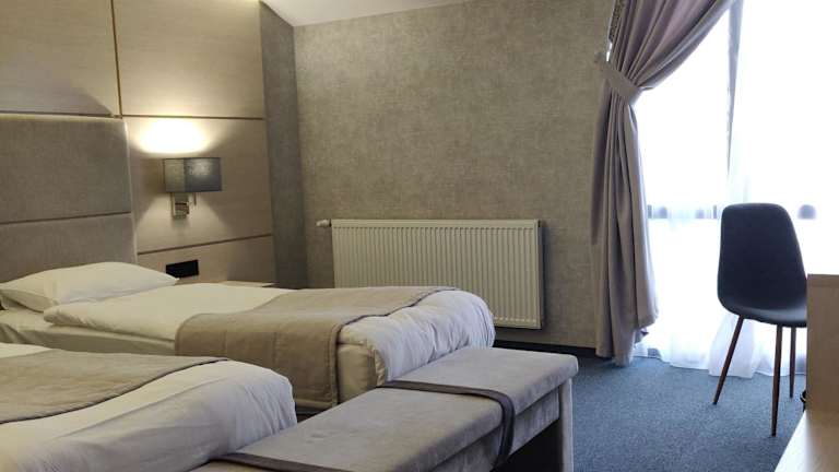 Das Zefir Hotel in Drogobych bietet seinen Gästen einen angenehmen Aufenthalt mit zahlreichen Annehmlichkeiten. Genießen Sie die köstlichen Speisen im Restaurant, entspannen Sie in der Bar oder erkunden Sie den Garten. Das kostenfreie WLAN ermöglicht es Ihnen, mit Ihren Lieben in Kontakt zu bleiben, während der Zimmerservice und die Terrasse Ihren Aufenthalt noch angenehmer machen. Das Hotel bietet auch kostenfreie Privatparkplätze und einen Flughafentransfer gegen Gebühr. Die klimatisierten Zimmer sind komfortabel eingerichtet und verfügen über einen Balkon mit Blick auf die Stadt. Beginnen Sie Ihren Tag mit einem köstlichen kontinentalen oder à-la-carte-Frühstück. In der Umgebung des Hotels können Sie verschiedene Aktivitäten wie Wandern unternehmen.