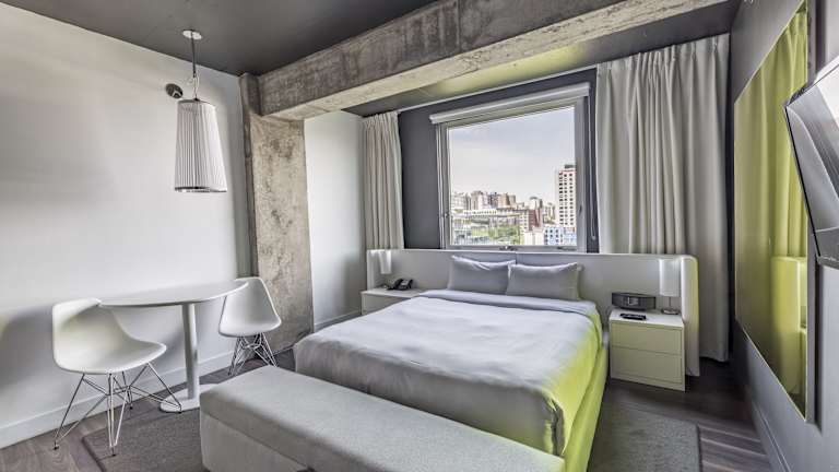 Das Hotel ZERO 1 liegt im zentralen Stadtviertel Quartier des Spectacles in Montreal. Von der Außenterrasse des Hotels aus können die Gäste einen Panoramablick auf die Umgebung genießen. Das Hotel liegt günstig in der Nähe von U-Bahnhöfen und bietet eine einfache Anbindung an die Altstadt von Montreal und das Kongresszentrum.