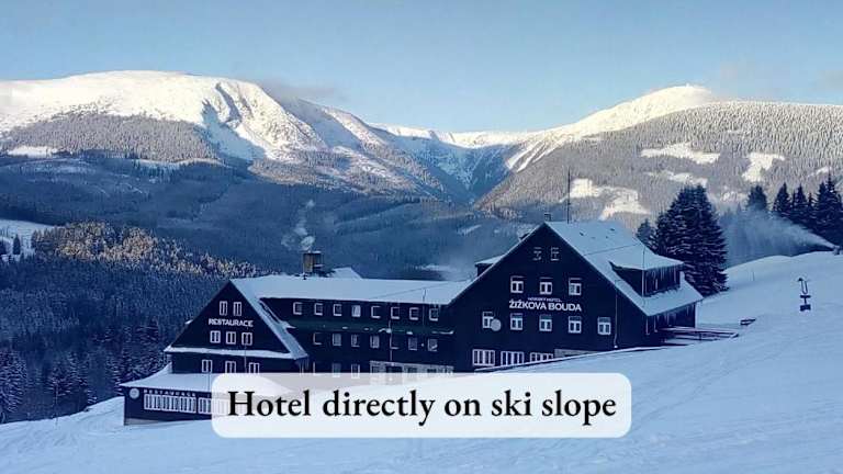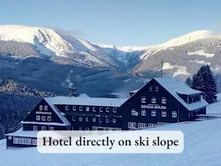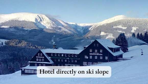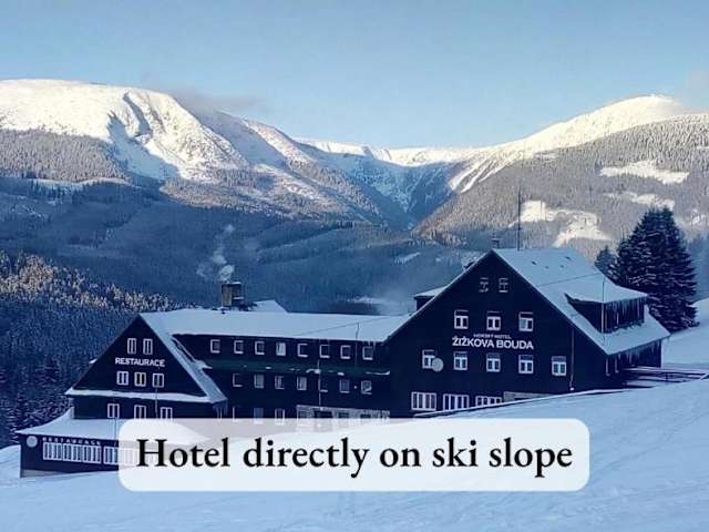 Das Horský hotel Žižkova bouda befindet sich auf einem Hügel oberhalb von Pec pod Sněžkou und bietet einen wunderschönen Blick auf das Riesengebirge. Es liegt direkt an einer Skipiste des Nationalparks, was es zu einem perfekten Ort für Skifahrer und Naturliebhaber macht. Die Seilbahn Velká Úpa ist nur 3 km entfernt und das Dorfzentrum erreichen Sie nach einem kurzen 10-minütigen Spaziergang.